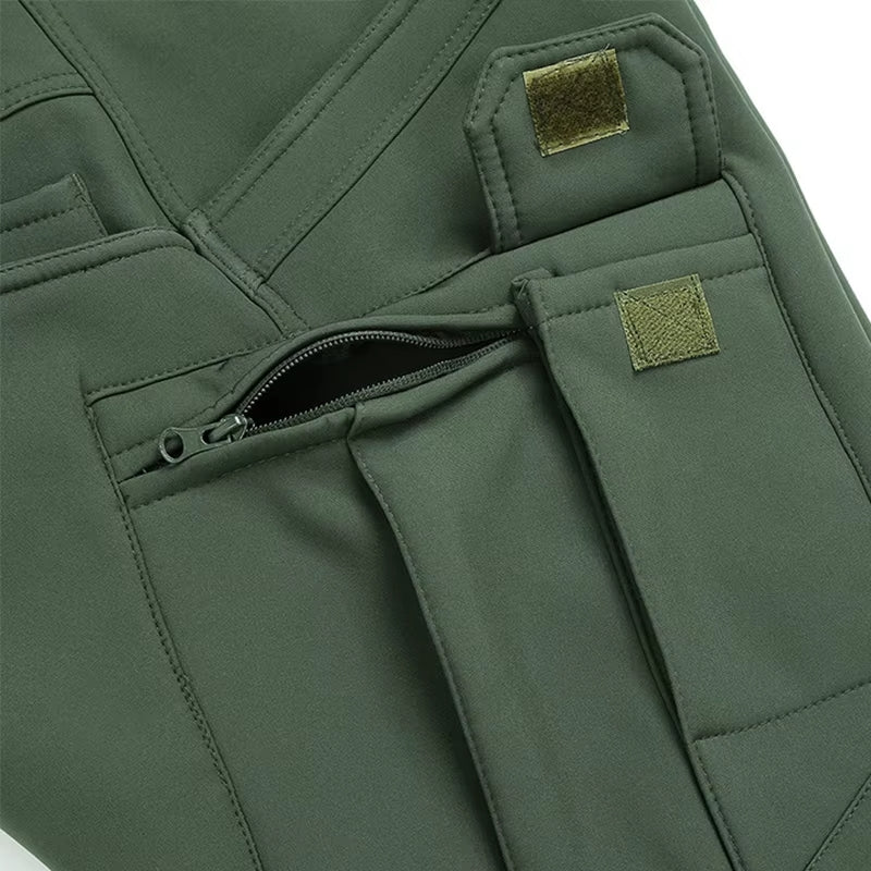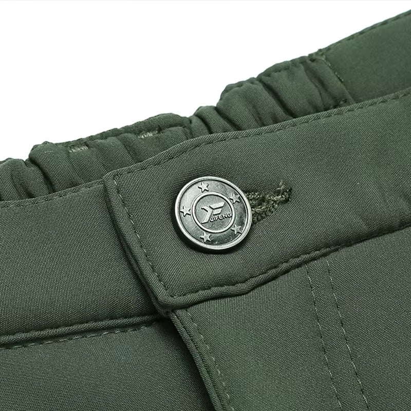 Estos pantalones impermeables para hombres están diseñados para actividades al aire libre en invierno, con un forro polar grueso y un diseño de múltiples bolsillos para mayor funcionalidad.